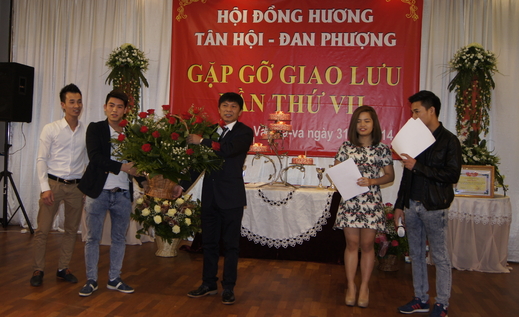 Thanh niên Tân Hội tặng hoa chúc mừng lãnh đạo Hội ĐH Tân Hội.