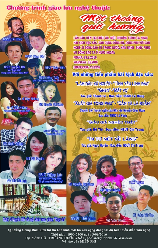Hội đồng hương Nam Định tại Ba Lan trân trọng kính mời bà con cộng đồng tới dự chương trình biểu diễn nghệ thuật "Một thoáng quê hương"
