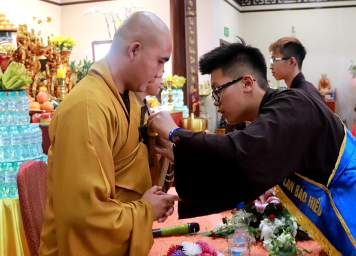 rong không khí của buổi lễ tôn vinh các bậc sinh thành. Sau bài cảm niệm Vu Lan của Đại đức Thích Trung Đại và một Phật tử, nghi thức bông hồng cài áo được tiến hành. Những bông hồng trắng, bông hồng đỏ được các cháu trong đội nghi lễ gắn lên ngực các Đại đức và bà con có mặt trong buổi lê.