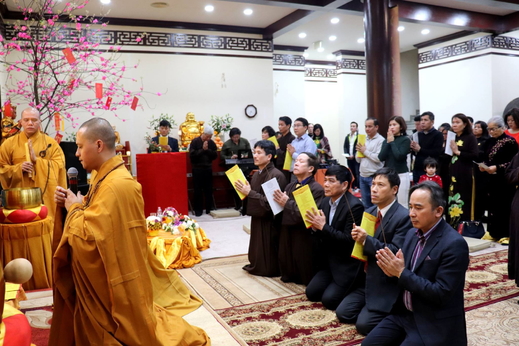 Sau bài Phấp thoại của Thượng tọa, nghi thức cầu Quốc thái dân an, cầu an đầu năm cho toàn thể cộng đồng Việt Nam tại Ba Lan đã được tiến hành trang nghiêm, trọng thể theo nghi lễ của nhà Phật.