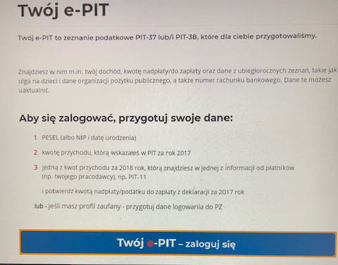 xanh với dòng chữ:” Twój e-PIT – zaloguj się” (Bản