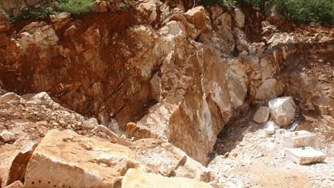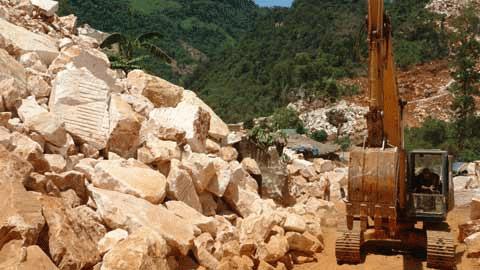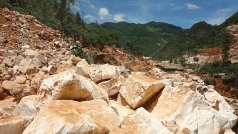 | Một vỉa đá trắng đang được khai thác dưới cái nắng 40 độ và gió Lào thông thốc nơi miền Tây xứ Nghệ. |