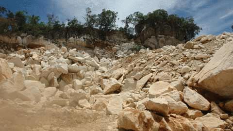 Bởi, nằm kẹp giữa khu vực khai thác đá trắng hai bên là núi cao sừng sững hiểm trở, một khai trường nằm ngay chân núi, đã được sức người, sức máy khoét thủng thành những lòng máng sâu vài chục mét, với những hố quặng nham nhở tựa như những hang ngầm của vùng núi đá địa hình caxtơ bị chia cắt mạnh với nhiều đứt gẫy theo đặc điểm cấu tạo địa chất.
