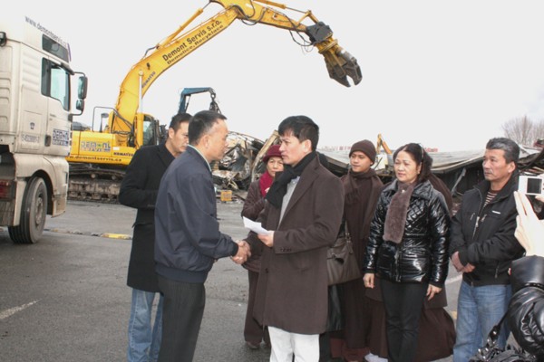 Ngày 15 tháng 1 năm 2011 đoàn đại biểu do ĐĐ Thích Trí Thường và ĐĐ Thích Trung Không dẫn đầu đã tới thăm hỏi động viên trao quà cho bà con thông qua ban cứu trợ hỏa hoạn. Tháp tùng các Thày có cụ Phan Thị Vân, thành viên Hội đồng điều hành Hội PT VN tại CH Séc, bà Vũ Thị Hà, phó chủ tịch Hội phụ Nữ VN tại CH Séc, thành viên Hội Đồng điều hành Hội PT VN, ông Đỗ Hữu Chiến, chủ tịch chi Hội Phật Tử tại Plzen và các thành viên khác của TW Hội Phật Tử.