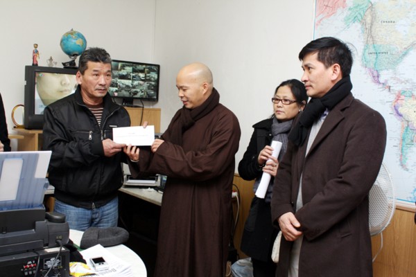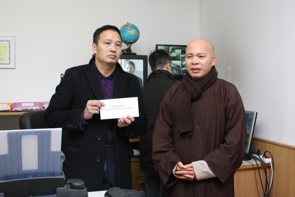 ĐĐ Thích Trí Chơn, cố vấn Hội Phật Tử VN tại CH Séc đang bận Phật sự ở quê nhà đã gửi tặng bà con số tiền 10.000USD. Số tiền này ĐĐ Thích Trí Thường đã thay mặt để trao cho Ban cứu trợ hỏa hoạn.