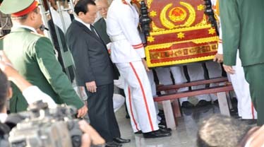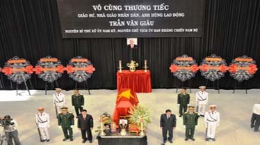 | Bí thư Thành uỷ TP.HCM, Lê Thanh Hải trong phút tiễn đưa ông Sáu Giàu. |