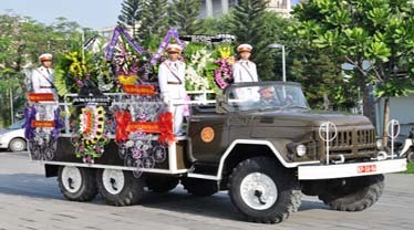 | GS. Trần Văn Giàu được đưa ra xe, về với đất mẹ. |