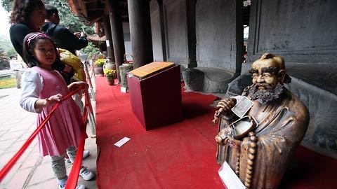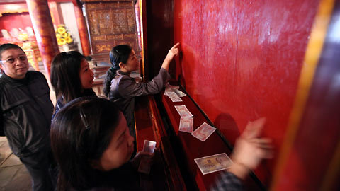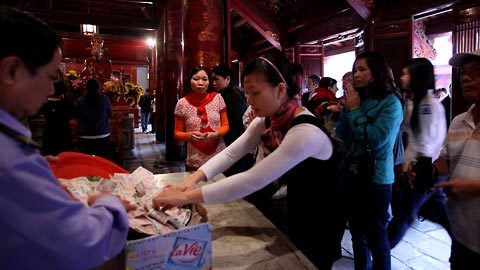 Rất nhiều người đến Văn Miếu – Quốc Tử Giám thắp hương những ngày đầu xuân luôn kè kè hàng xấp tiền lẻ để cầu tài lộc, đỗ đạt và đặt tiền vào cả những nơi thờ tự Khổng Tử, các vị vua, người thầy tiêu biểu về đạo cao, đức trọng của nền giáo dục Việt Nam - Chu Văn An.