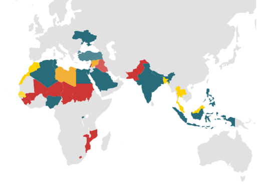 - Indonexia: các vùng đặc biệt nguy hiểm: tỉnh Aceh, thành phố Poso, thành phố Ambon, thành phố Solo và Makasar.