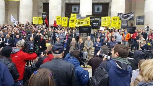 4. Ngày 8/10 các nghệ sỹ đã biểu tình ở trước Cung Văn hóa và Khoa học ở Vác-sa-va: „Chúng tôi không để văn hóa rơi vào tay các ông” – đó là khẩu hiệu của những người tụ họp trước Cung Văn hóa. Các nghệ sỹ chống sự can thiệp của các chính trị gia vào văn hóa và chính sách văn hóa. Các diễn viên Nhà hát Ba Lan (Teatr Polski) ở Wrocław đã có mặt trong số những người tham gia biểu tình.