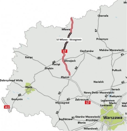 2.Ông Karol Głębocki, người phát ngôn của Tổng Cục Đường và Xa lộ Quốc gia (Generalna Dyrekcja Dróg Krajowych i Autostrad) thì tổ hợp PORR Polska Infrastructure ở Vác-sa-va và PORR Bau ở Viên sẽ xây đoạn đường S7 từ Mława đến Strzegowo với giá 446,2 triệu zł trong thời hạn tối đa 3 năm. Đây là một đoạn đường S7 về phía biển và vùng Mazur nằm trong một cuộc đầu tư xây 71km đường thực hiện dần cho bốn đoạn đường: Napierki - Mława (khoảng 14 km), Mława – Strzegowo (khoảng 21,5 km), Strzegowo-Pieńki (khoảng 22 km), Pieńki - Płońsk (khoảng 13,7 km). Tiền xây do Liên minh Châu Âu tài trợ trong chương trình cho các năm 2014-2020.