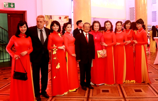Nguyên Đại sứ Nguyễn Hoằng ( giữa)và phu nhân chụp ảnh lưu niệm với các chị em trong Hội phụ nữ Việt Nam tại Ba Lan.