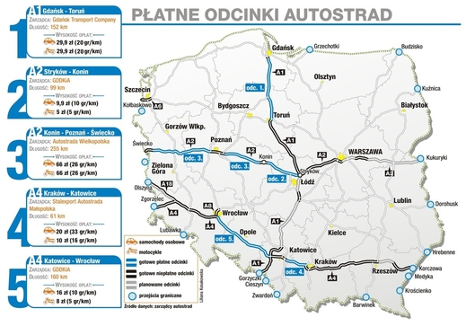 mạng lưới các đường cao tốc thu phí ở Ba Lan và giá lệ phí.