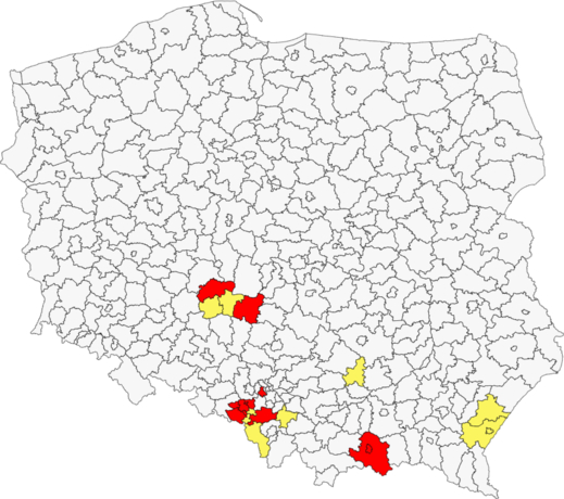 địa phương nằm trong vùng „vàng” gồm: Wieruszowski