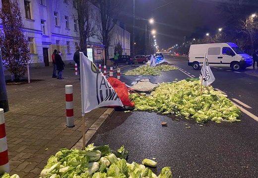 bãi công của nông dân. Những người biểu tình đã ném bắp cải trên một ngã tư đường