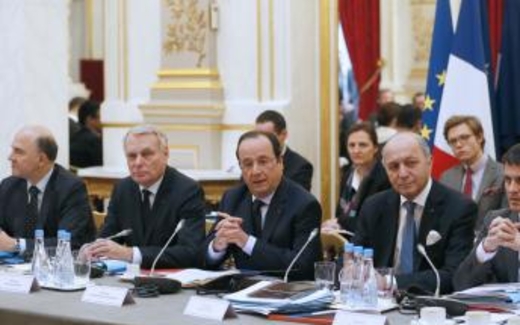 Tổng thống Pháp Hollande và thành viên chính phủ trong cuộc họp với chủ nhân các tập đoàn công nghiệp tầm cỡ của thế giới, tại điện Elysee, ngày 17/02/2014.