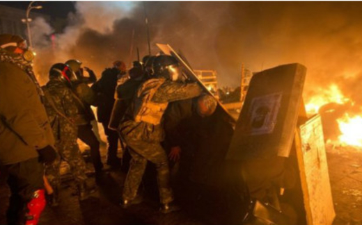 Cảnh sát đang tiến hành tấn công trại biểu tình chính ở thủ đô Kiev, Ukraine, nơi bị chiếm từ tháng 11 năm ngoái.
