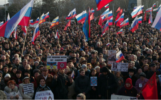 Nhiều người nói tiếng Nga ở phía đông và nam Ukraine đã phản đối hành động của chính quyền lâm thời.