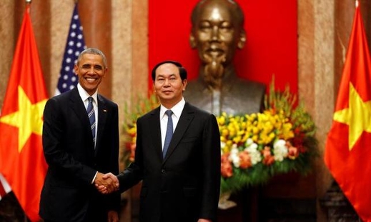 Ảnh: CTN Trần Đại Quang tiếp TT Obama tại Phủ Chủ tịch. Nguồn: Reuters.