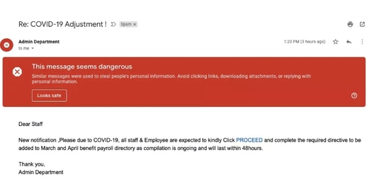 Mặc dù đội ngũ an ninh của Google đã chặn đứng hầu hết các email này, nhưng công ty cảnh báo người dùng cần hết sức thận trọng do tin tặc đang lợi dụng tâm lý lo lắng và nhu cầu tìm hiểu thông tin về dịch Covid-19 để lừa đảo, chiếm đoạt tài khoản, hoặc thông tin cá nhân.Theo đó, chỉ riêng trong tuần qua, các nhân viên bảo mật Google phát hiện hơn 18 triệu email lừa đảo, gắn mã độc mỗi ngày. Đây chỉ là phần nổi của hơn 240 triệu email, tin nhắn spam mỗi ngày liên quan tới những câu chuyện, mẩu tin tức, hay cập nhật số liệu về dịch Covid-19.