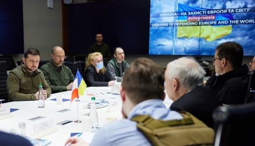 (Thủ tướng Ba Lan Mateusz Morawiecki cùng với thủ tướng Séc Petr Fiala, Thủ tướng Slovenia Janez Jansa và Phó Thủ tướng Ba Lan Jaroslaw Kaczynski gặp tổng thống Ukraine Volodymyr Zelensky vào tháng 3/2022)
