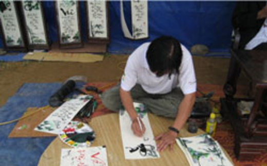 Viết thư pháp trong một hội chợ. RFA