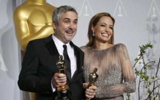 Angelina Jolie và đạo diễn Alfonso Cuarón, tác giả bộ phim Gravity đoạt 7 giải Oscar - REUTERS / Mario Anzuoni