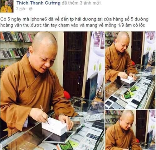 Hình ảnh nhà sư "đập hộp iphone 6" đăng trên mạng xã hội Trước đó, Giáo hội Phật giáo Hải Dương đã quyết định bãi miễn chức trụ trì đối với nhà sư này. Tuy nhiên, do biết ăn năn, nhận khuyết điểm, nhà sư này đã được giảm nhẹ hình thức kỷ luật.