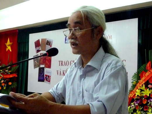 Nhà phê bình văn học Phạm Xuân Nguyên - Chủ tịch Hội Nhà văn Hà Nội đọc diễn văn trao giải