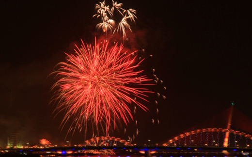 Pháo hoa rực sáng bên sông Hàn ở Đà Nẵng. Ảnh: Nguyễn Đông.