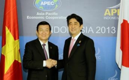 Chủ tịch nước Việt Nam Trương Tấn Sang và Thủ tướng Nhật Bản Shinzo Abe tại Thượng đỉnh APEC 2013 ở Indonesia.