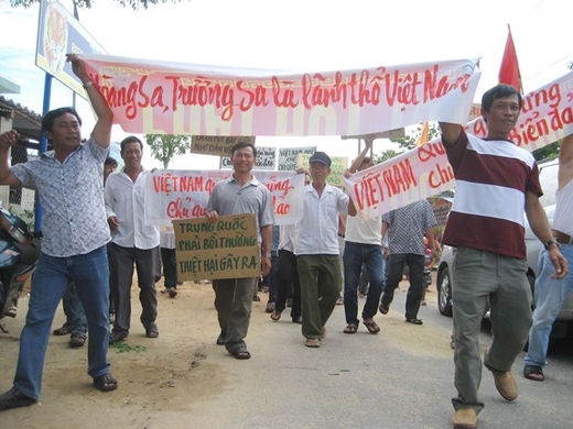 Tại Quảng Nam sáng nay, hơn 600 ngư dân của các nghiệp đoàn nghề cá của 4 xã Bình Minh, Bình Nam, Bình Dương và Bình Hải đã tổ chức mít tinh và diễu hành trong không khí ôn hòa để phản đối những việc làm sai trái của Trung Quốc trên vùng biển chủ quyền Việt Nam.