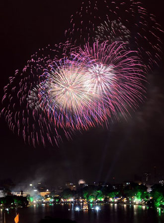 Hồ Hoàn Kiếm sẽ có 2 điểm bắn pháo hoa. Ảnh: Xuân Hoa |