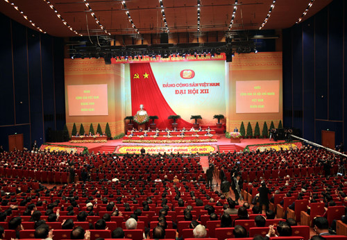 Cũng tại hội trường này, cách đây 5 năm, Đại hội XI đã thông qua chiến lược phát triển KT-XH trong đó nêu rõ phải kiên trì, quyết liệt thực hiện đổi mới, đổi mới chính trị phải đồng bộ với đổi mới kinh tế. Trọng tâm là hoàn thiện thể chế kinh tế thị trường định hướng XHCN, đổi mới phương thức lãnh đạo của Đảng, xây dựng nhà nước pháp quyền XHCN, mở rộng dân chủ trong Đảng và trong XH. Nghị quyết khẳng định phải lấy việc thực hiện mục tiêu này làm tiêu chuẩn cao nhất đánh giá hiệu quả quá trình đổi mới.