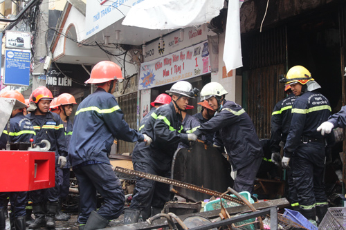 Lực lượng cứu hộ đang cố gắng tìm kiếm thi thể nạn nhân trong vụ cháy vào rạng sáng 16.9