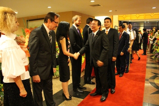 Cán bộ ĐSQ Ba Lan tại Việt Nam tiếp đón khách mời và đại biểu