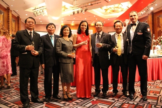 (Ông Hồ Chí Hưng, ông Tạ Minh Châu, ông Nguyễn Văn Xương cùng phu nhân chụp ảnh thân mật cùng bà Đại sứ Barbara Szymanowska và Tùy viên Quân sự ĐSQ Ba Lan tại VN)