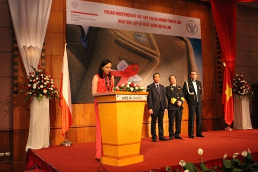 Bà Barbara Szymanowska, Đại sứ nước Cộng hòa Ba Lan tại Việt Nam phát biểu tại buổi lễ