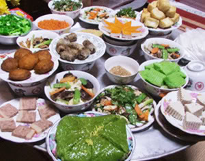 Xưa kia, chẳng mấy làng thuộc vùng Kinh Bắc lại thiếu những món ăn chay trong ngày hội chùa. Bởi, hầu hết các gia đình đều sắp cỗ chay mang ra chùa cúng Phật, sau đó là tiếp đãi khách thập phương.