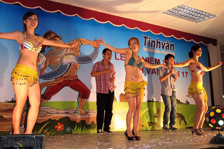 3. Mấy ngày qua, dân cư mạng đã bàn tán xôn xao về clip “Nhân viên Tinh Vân biểu diễn lột áo gây sốc”. Đây là một tiết mục văn nghệ trong lễ kỷ niệm sinh nhật lần thứ 17 của Công ty cổ phần Công nghệ Tinh Vân. Nếu chỉ nhìn qua đoạn clip này thì quả là phản cảm, thậm chí khiến người ta nhớ lại màn “múa khỏa thân” tai tiếng của các học viên FPT cách đây ít lâu. Chưa rõ “hoàn cảnh” dẫn tới màn lột váy áo chỉ còn bikini này là như thế nào, còn theo giải thích của lãnh đạo Công ty Tinh Vân thì “Phần đầu của hoạt cảnh mô tả cảnh các nhân viên Tinh Vân dốc sức cho công việc... Phần sau của hoạt cảnh mới đến đoạn công ty làm ăn hiệu quả, nhân viên có tiền thưởng rủng rỉnh được đi du lịch vui chơi ở biển. Trong phần này, để thể hiện một cách sống động việc vui chơi ở biển, các diễn viên đã có một màn nhảy táo bạo, cởi bỏ váy áo để chỉ mặc bộ bikini trên người”. Lãnh đạo công ty này cho rằng: “Mặc dù vở nhạc kịch có nội dung như trên, nhưng khi được đưa lên mạng thì lại chỉ có một trích đoạn ở phần cuối nên dễ gây phản cảm đối với người xem”.