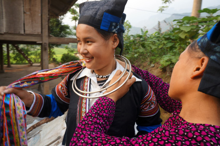 Các cô gái trang điểm trước khi vào chợ tình. |